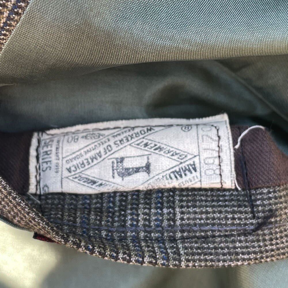 The classic glen check with a dull olive color creates a more luxurious feel, and the 3 buttons have a narrow V zone that is typical of the 60s, a shallow center vent, and a soft line along the shoulder while retaining the mannish of the box silhouette. The trousers are slender in the era, and the untucked, lightly tapered line of pants has a clean look, but has a silhouette that feels moderately mature.
