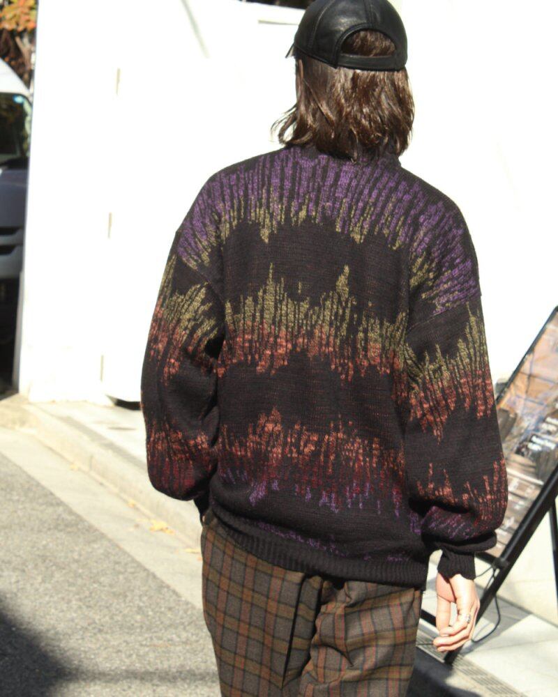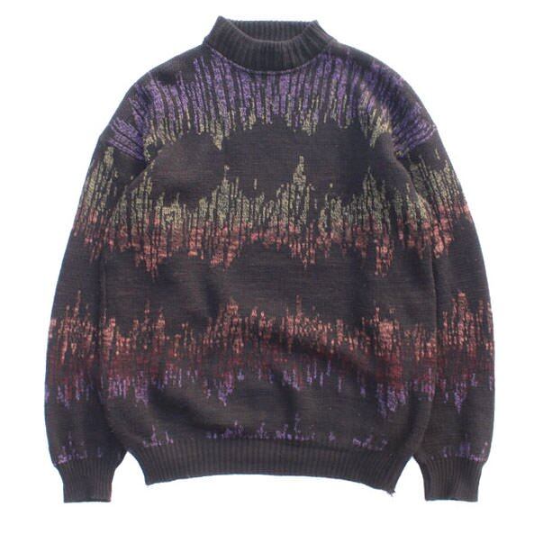 Mock neck knit from the 1980s. The soft knitting of wool and acrylic blend gives a sense of security. The wavy pattern combined with the colors is a mixture of ethnic and electronic, making it a design that is typical of this era. A loose and relaxed silhouette. Subjectively, it is in good condition as a second-hand item. Since it is an old item, it rarely deteriorates over time. Please check the photos and understand the vintage characteristics before purchasing.