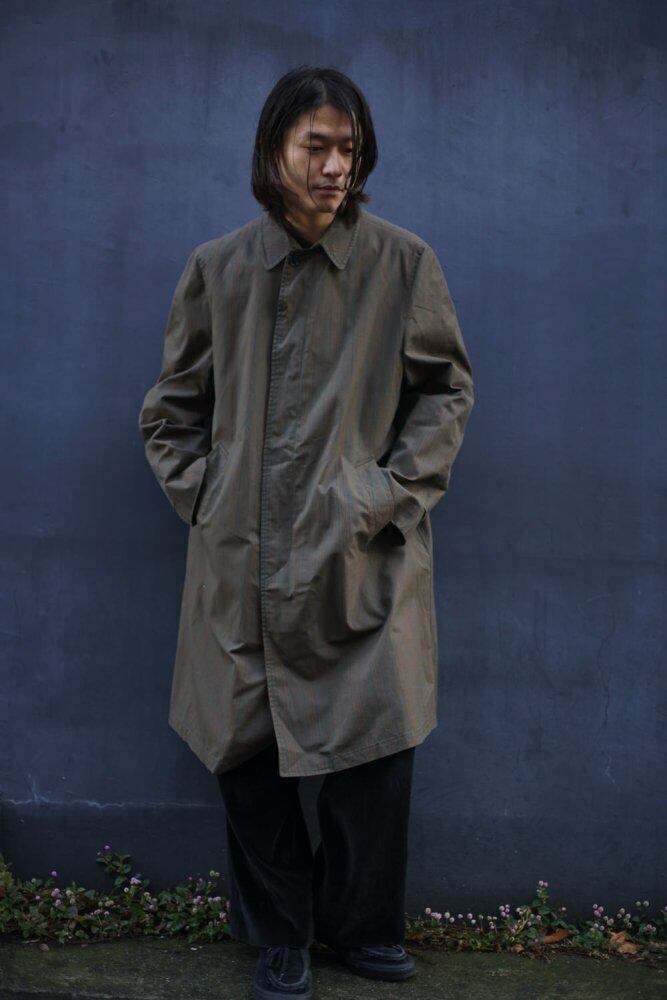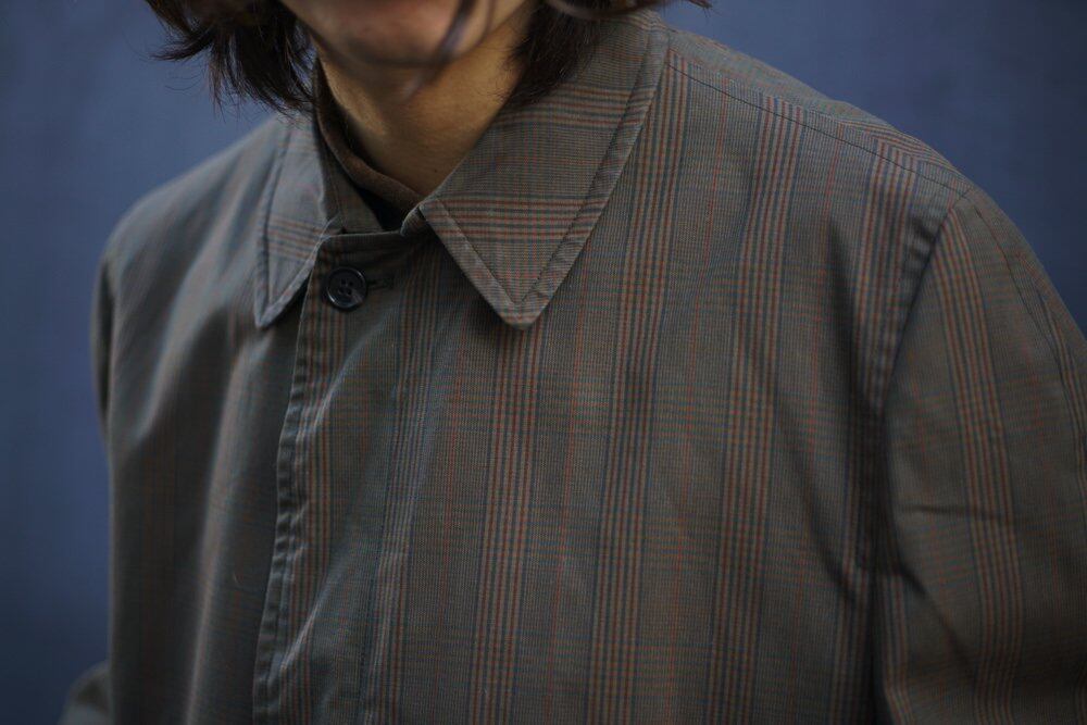 Around the 1960s, this is a vintage stainless steel collar coat made by LONDON FOG. The glen check fabric with a dull vintage-like dull brown body gives it an elegant look with a dull sheen.