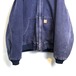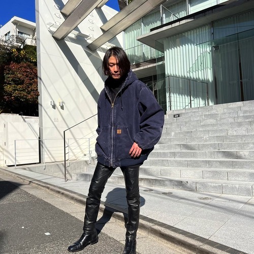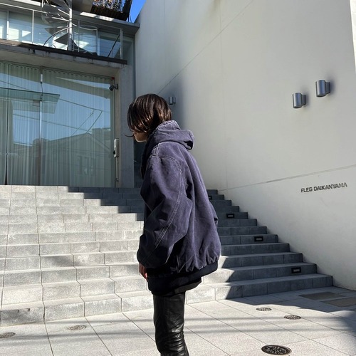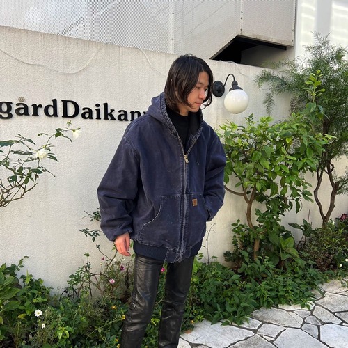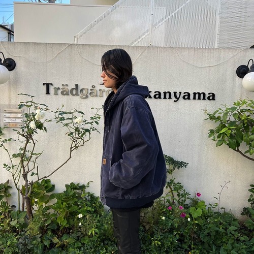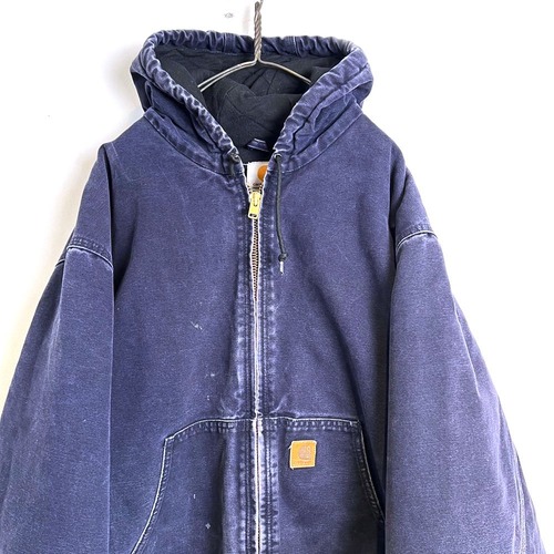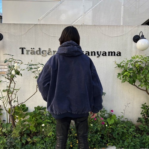 90s Carhartt hooded jacket A navy color that has faded over time The texture of the cotton duck fabric has a very nice atmosphere.