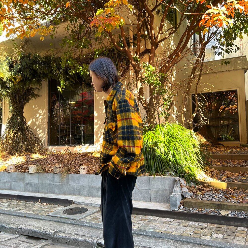 CPO wool shirt from the 40s and 50s The mustard yellow and black tartan check has a British image, and you can feel the smell of punk. Vintage wool shirt with good size and good silhouette