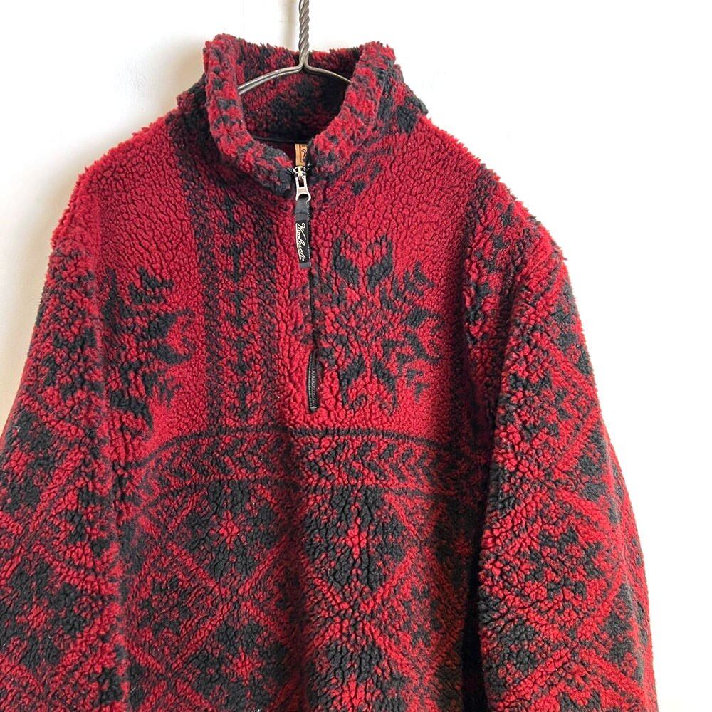 80s Woolrich fleece jacket The snowflake pattern printed in the dark shades of Bordeaux and black is cool and cute. Vintage fleece jacket. Im wearing