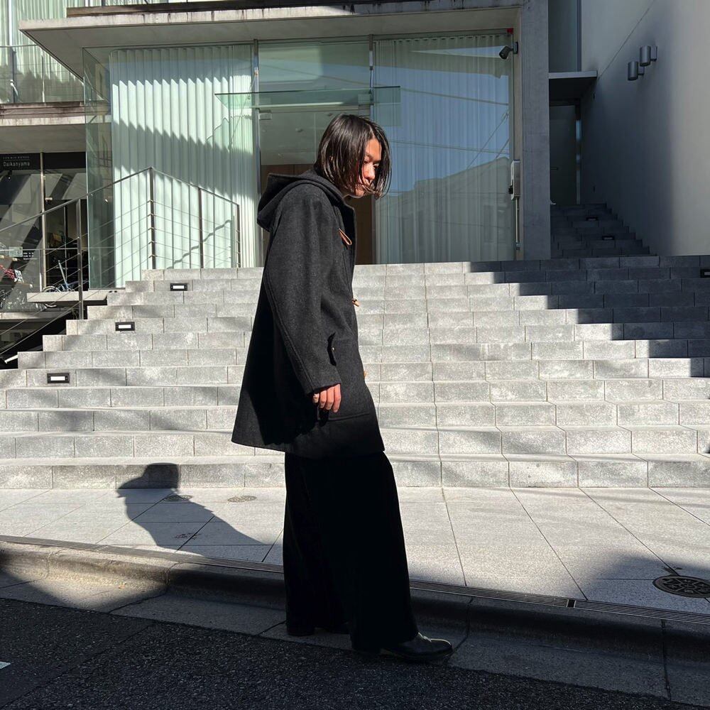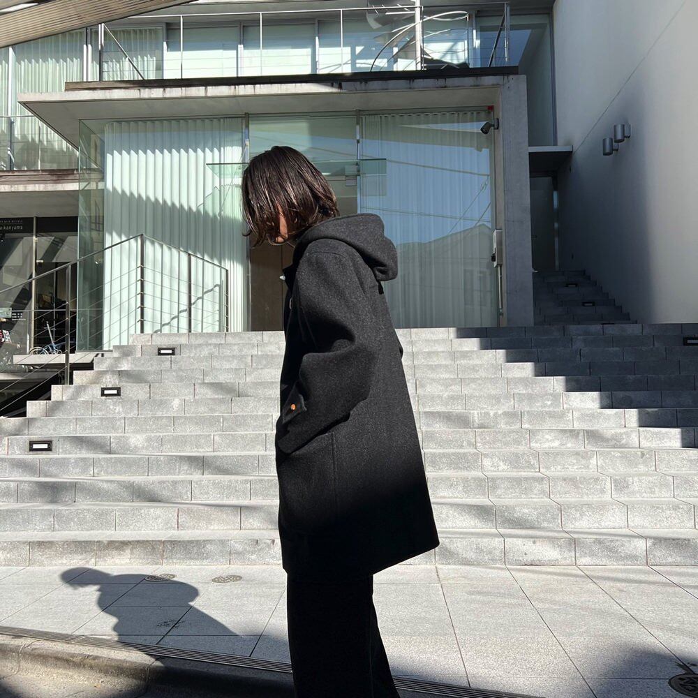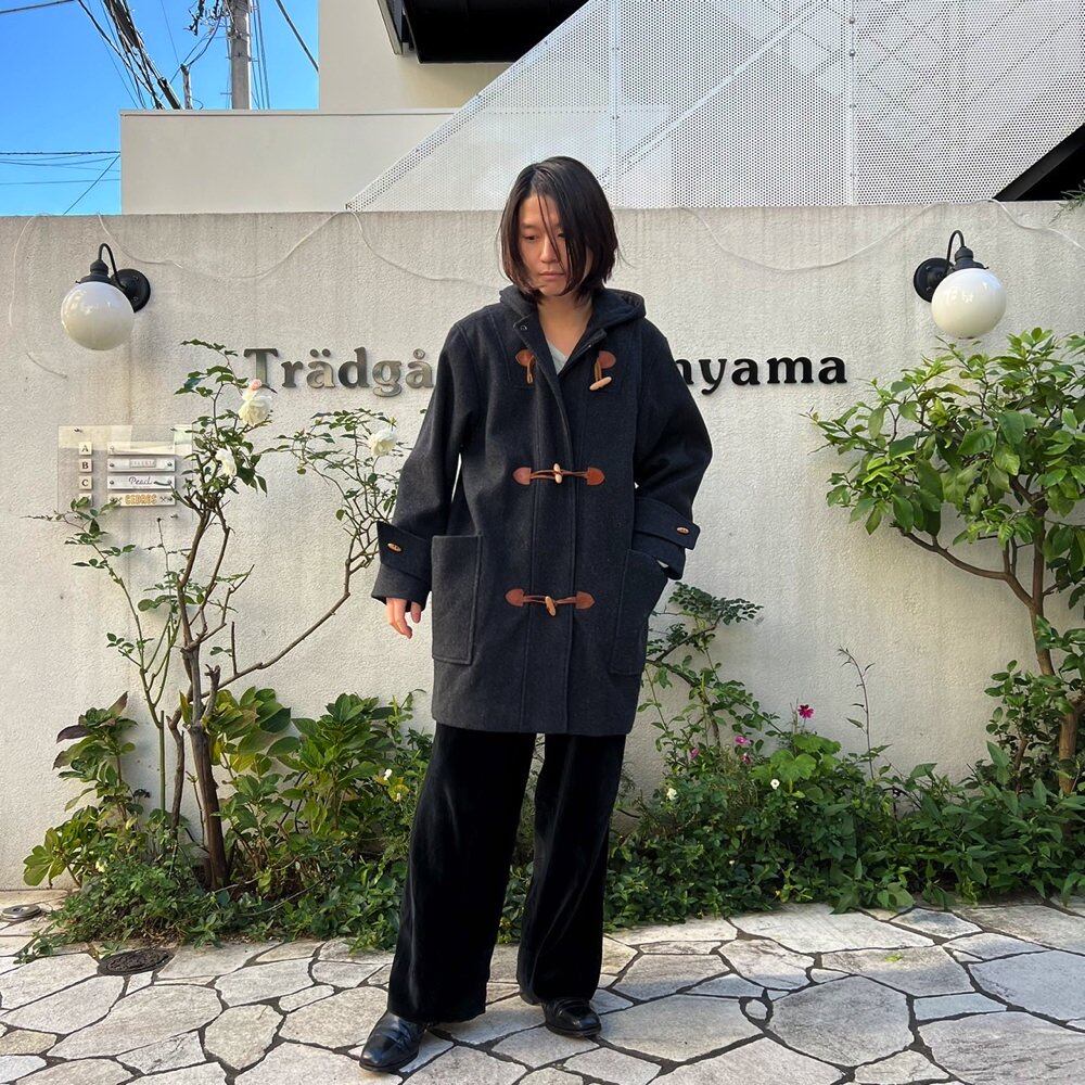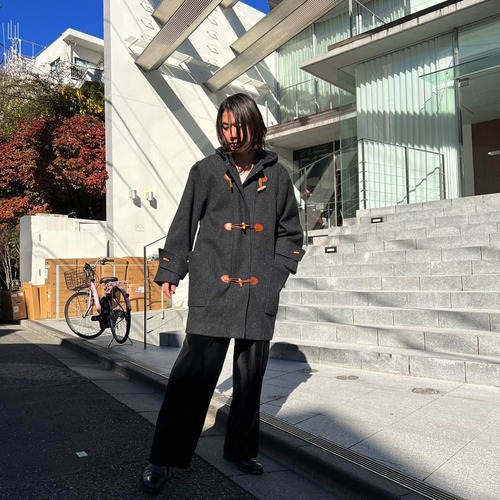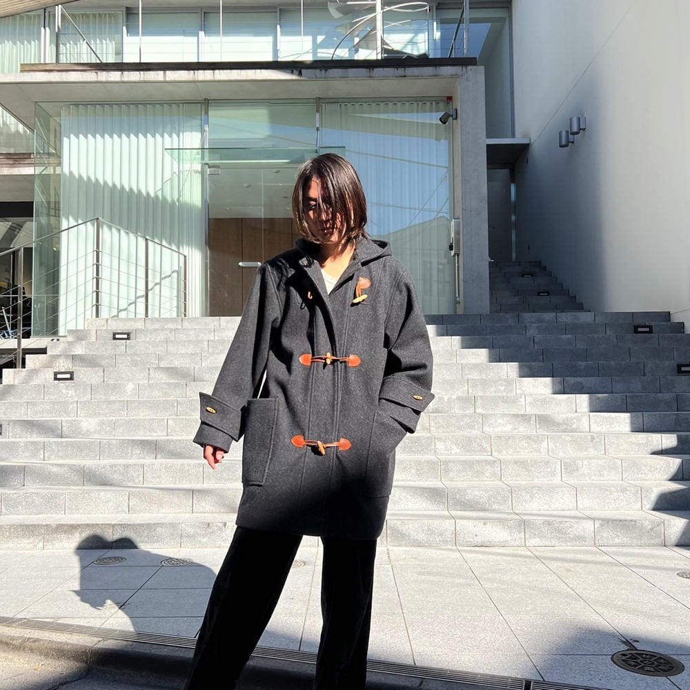 Duffel coat made in Romania in the 80s A vintage coat with a good silhouette that is easy to match with a charcoal color with a mature atmosphere and brown toggle buttons.