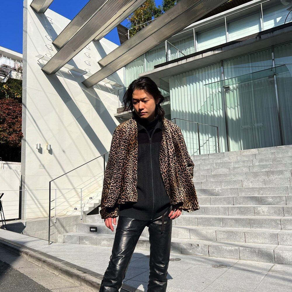 Shirt cardigan from the 90s A shirt cardigan made of velvet fabric with a luxurious leopard pattern A type of piece that can be worn open without a button closure. is an interesting one