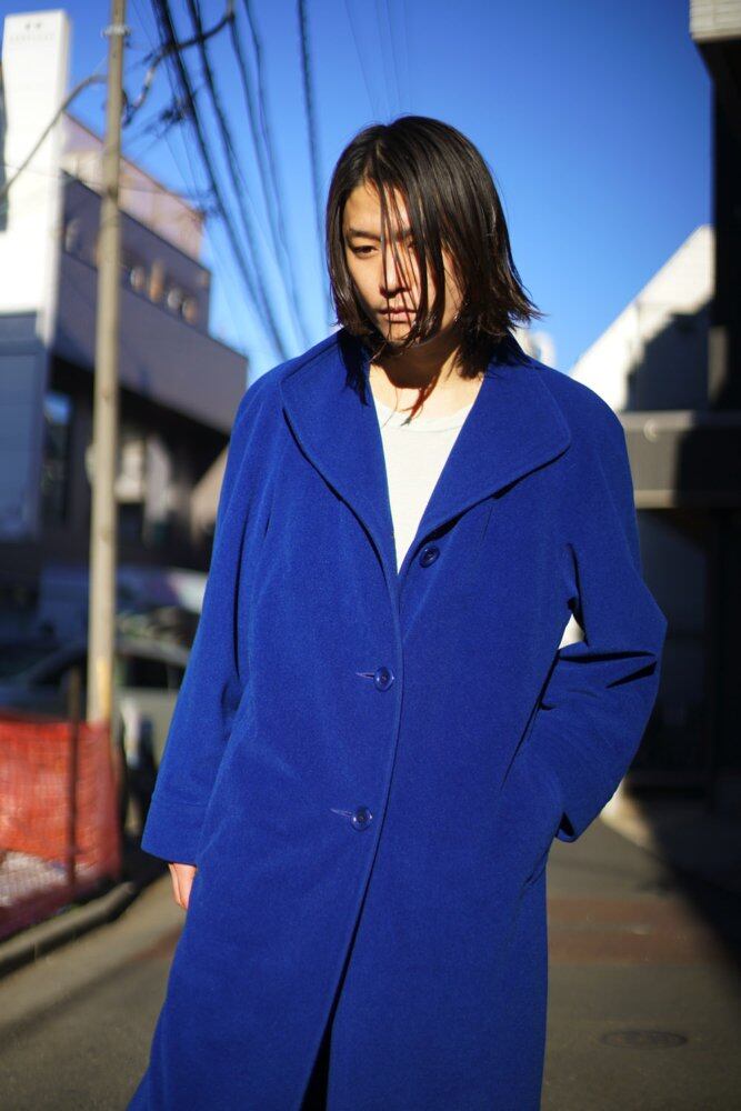 The light acrylic wool fabric is used as if it contains air, and the soft brushed feeling gives a gentle impression, and the beautiful blue color gives it a luxurious appearance.