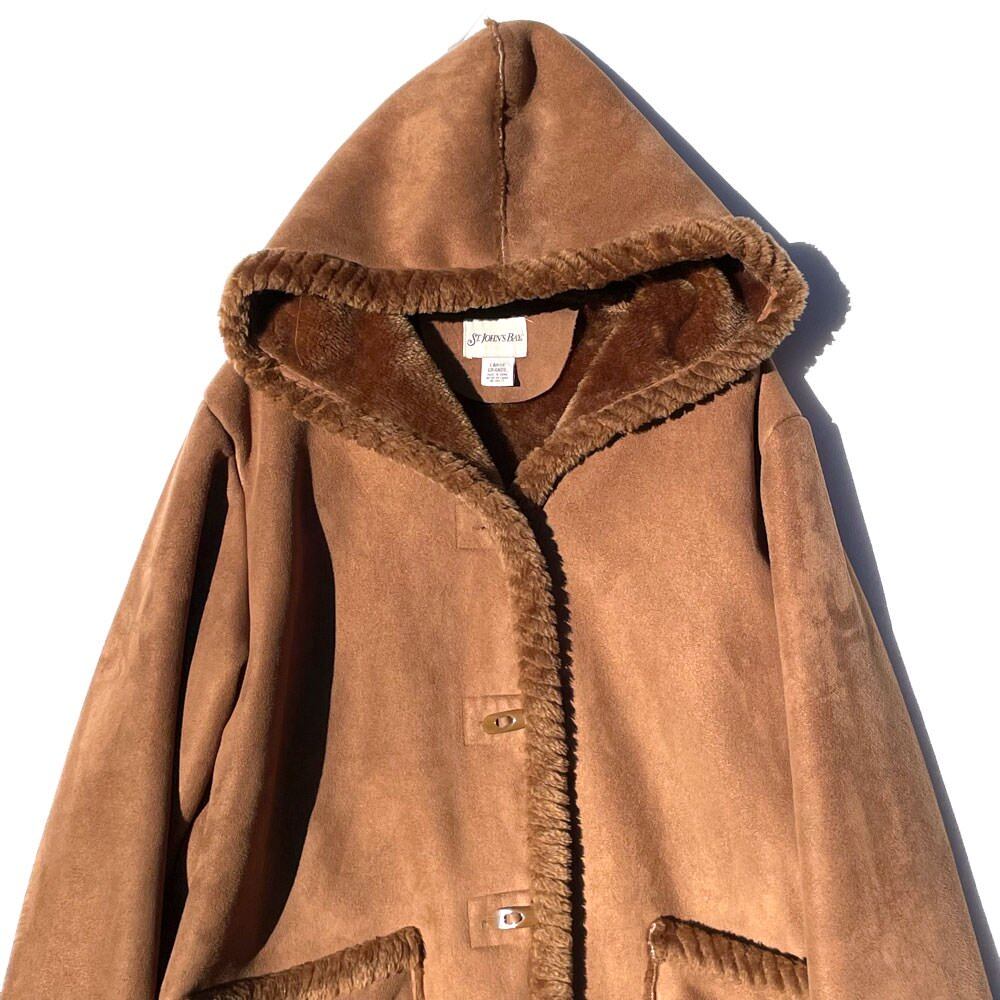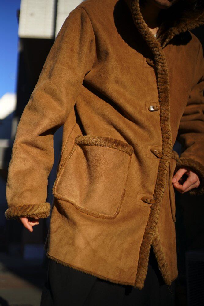 The elegant brown color with a dull sheen, the lining and cuffs, and the long-haired boa lined with the placket are luxurious details, and the coloring with a sense of unity gives a chic impression.
