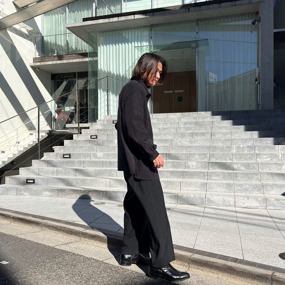 Faux suede shirt from the 90s Polyester fabric has been brushed to create a suede-like smooth texture. black color