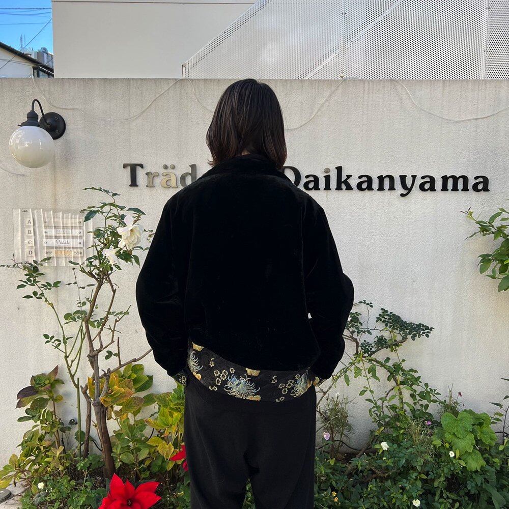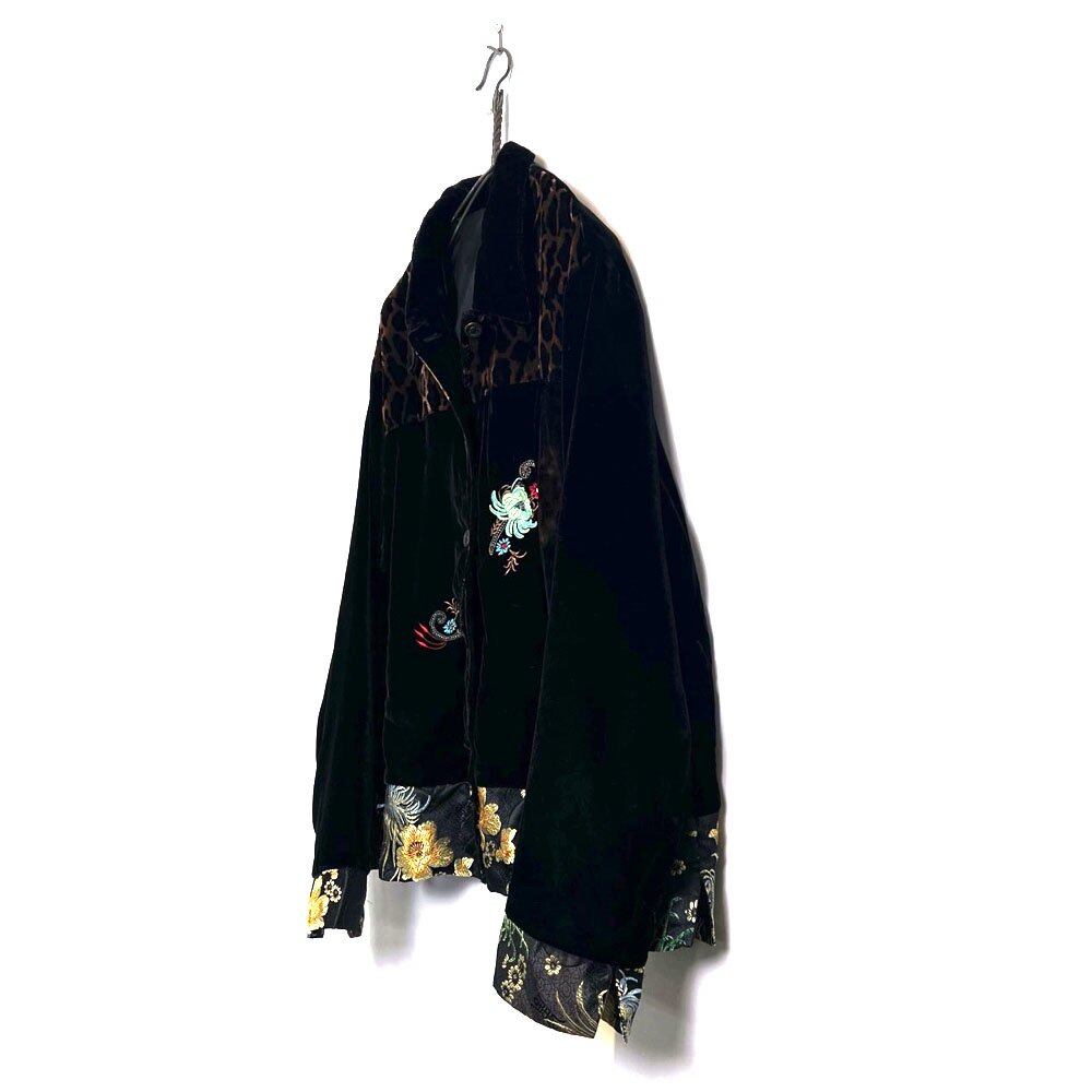 80s velvet jacket Black color base with crazy leopard and botanical patterns and an oriental feeling like a Chinese shirt. Cool shirt jacket that can be worn in a wide range of seasons. good silhouette vintage