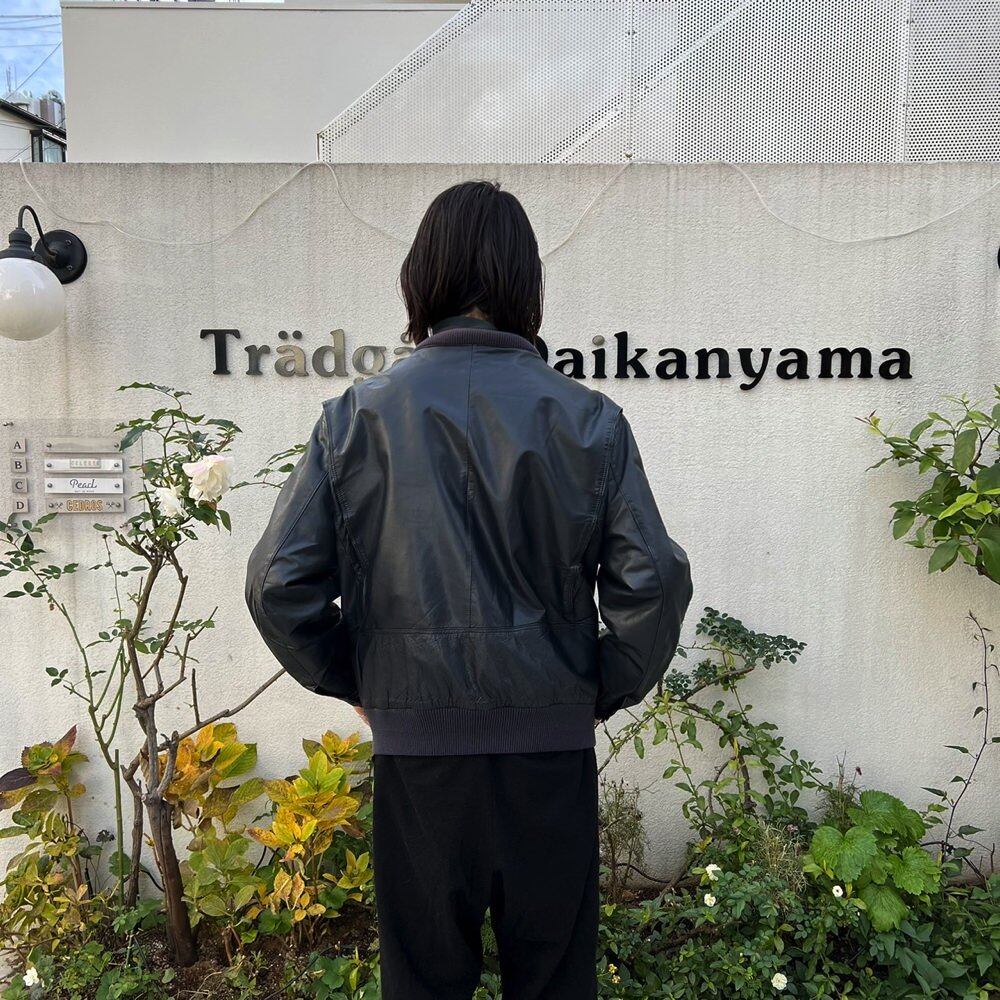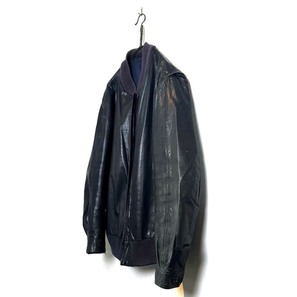 Leather jacket from the 80s Easy to match MA-1 type leather jacket A unique deep color that looks like a mixture of charcoal and navy.