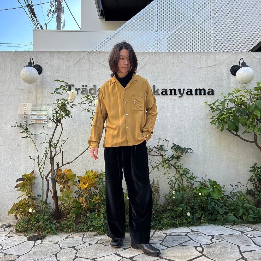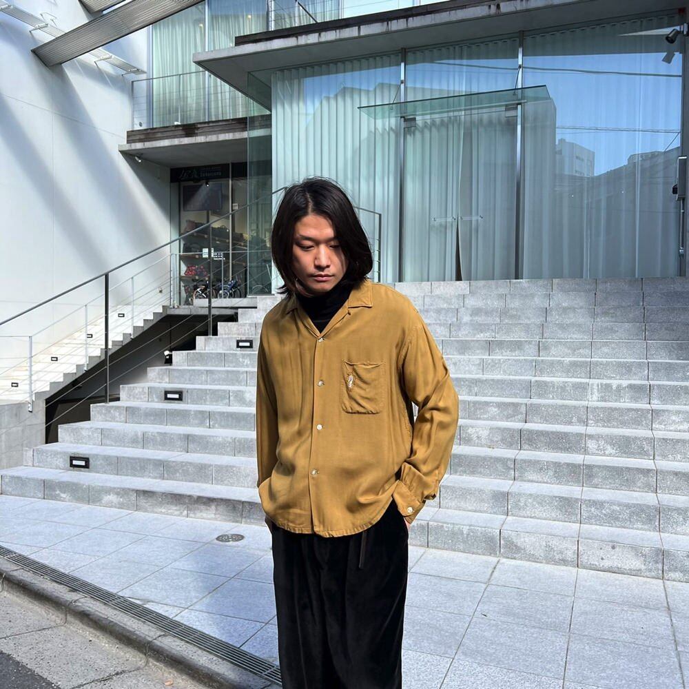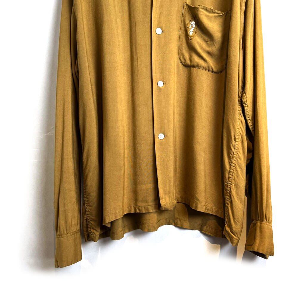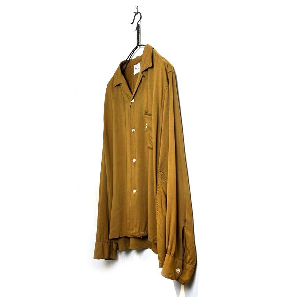 Rayon shirt from the 1960s A masculine astringent khaki color with a chess knight embroidered on the chest pocket for a nice atmosphere.