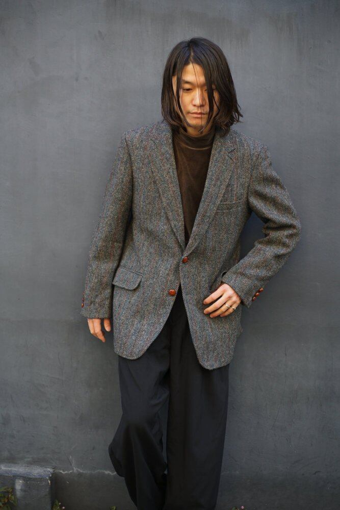 While the mannishness of the tailoring at that time remains, the heavy fabric unique to Harris Tweed is also soft and has a soft line that follows the body and a relaxed silhouette.