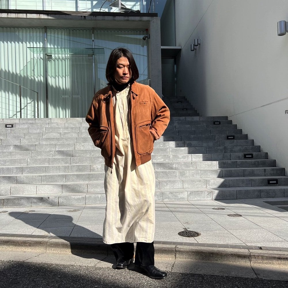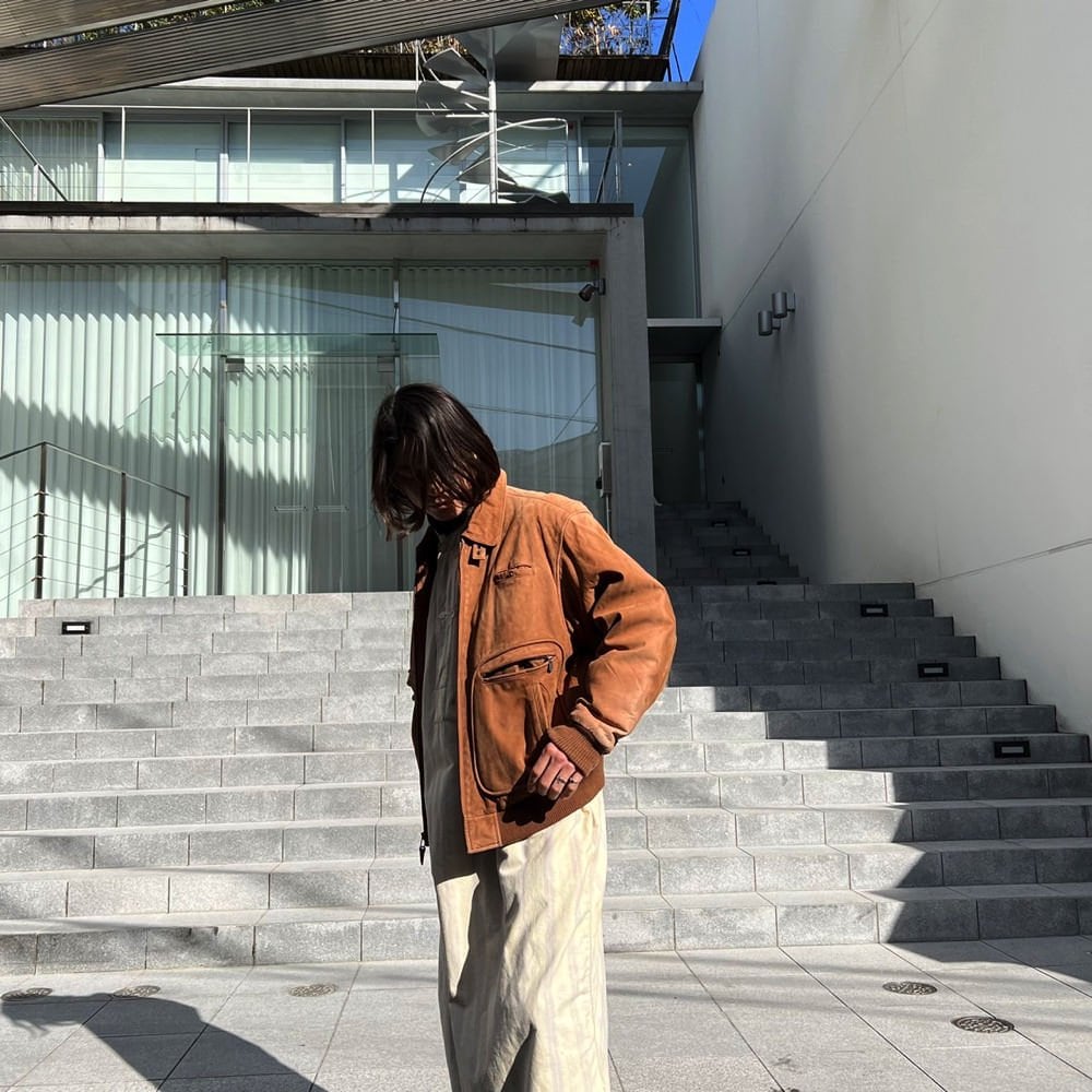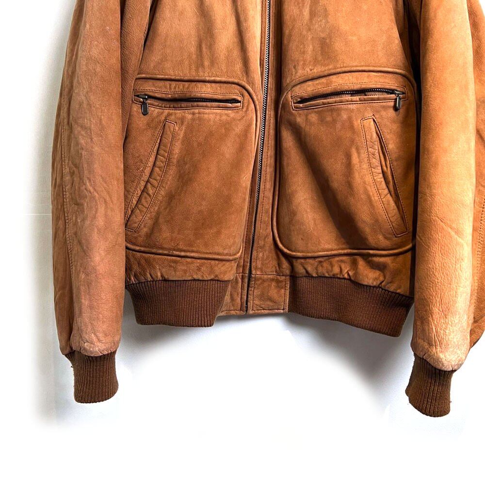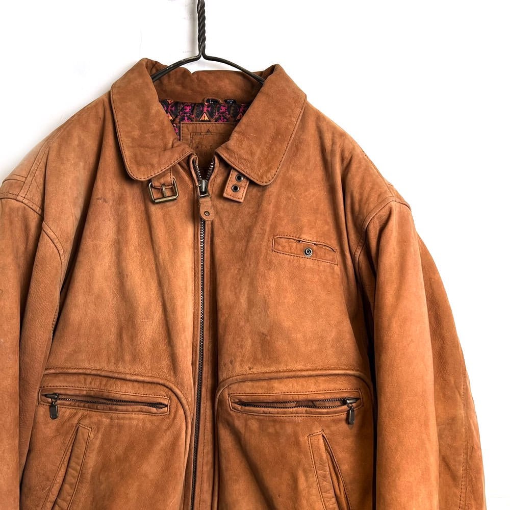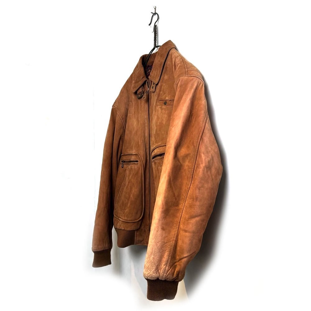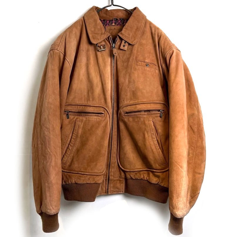 Nubuck leather jacket from the 90s A-2 design that is easy to match with the good camel brown color of the product. Smooth and soft nubuck leather, padded and highly resistant to the cold. good vintage leather jacket
