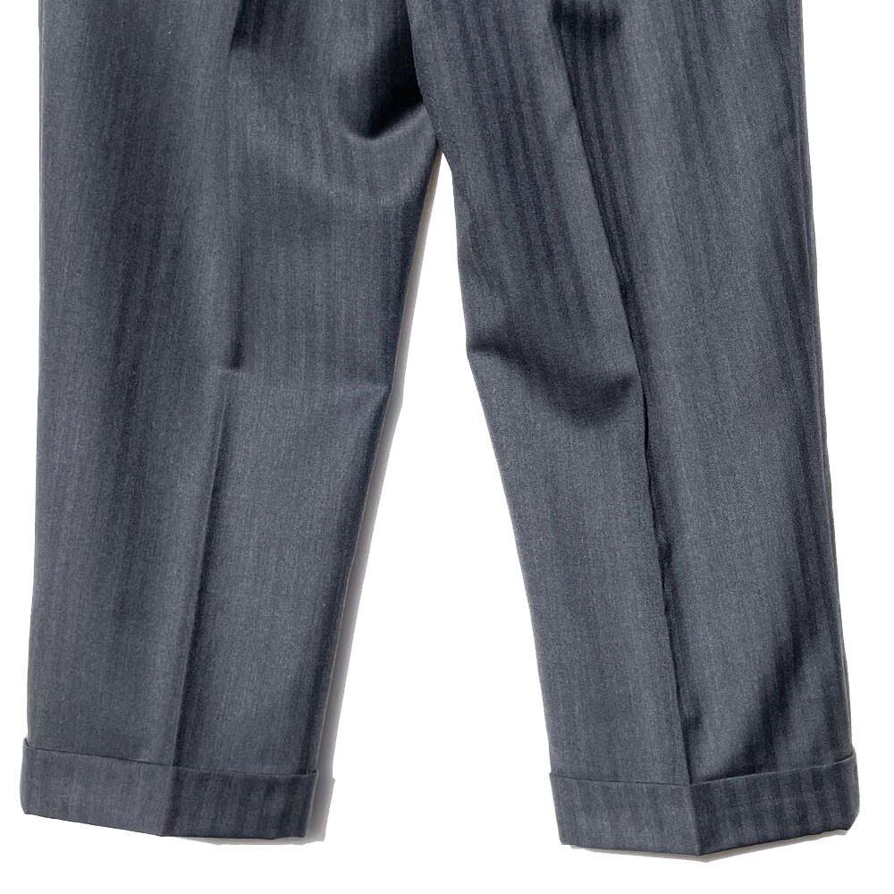 The 3-button voluminous lapel has a narrow V zone and center vent, the box silhouette retains the mannishness of the time, but the soft line along the shoulder, the trousers have a clean waist with no tucks, and a relaxed straight silhouette. American classic look.