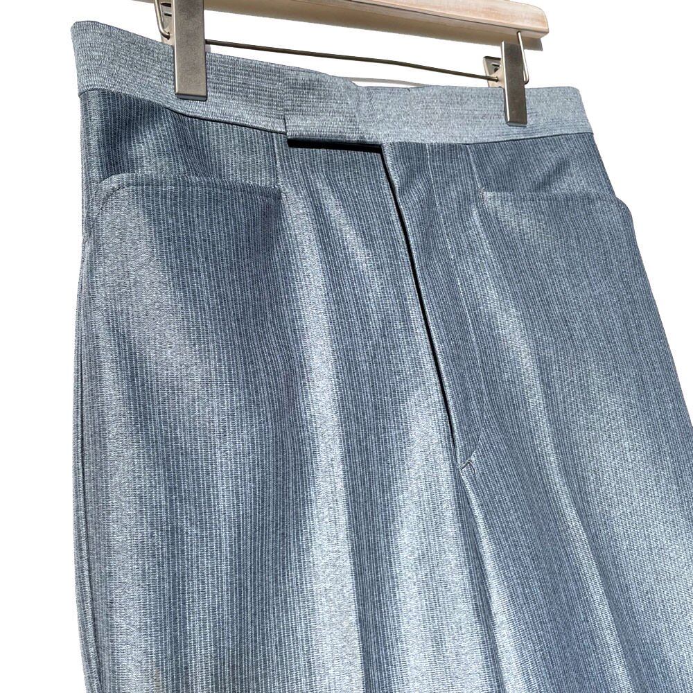 The trousers have a clean, no-tuck waist and a baggy silhouette with loose flared lines for a sexy look.