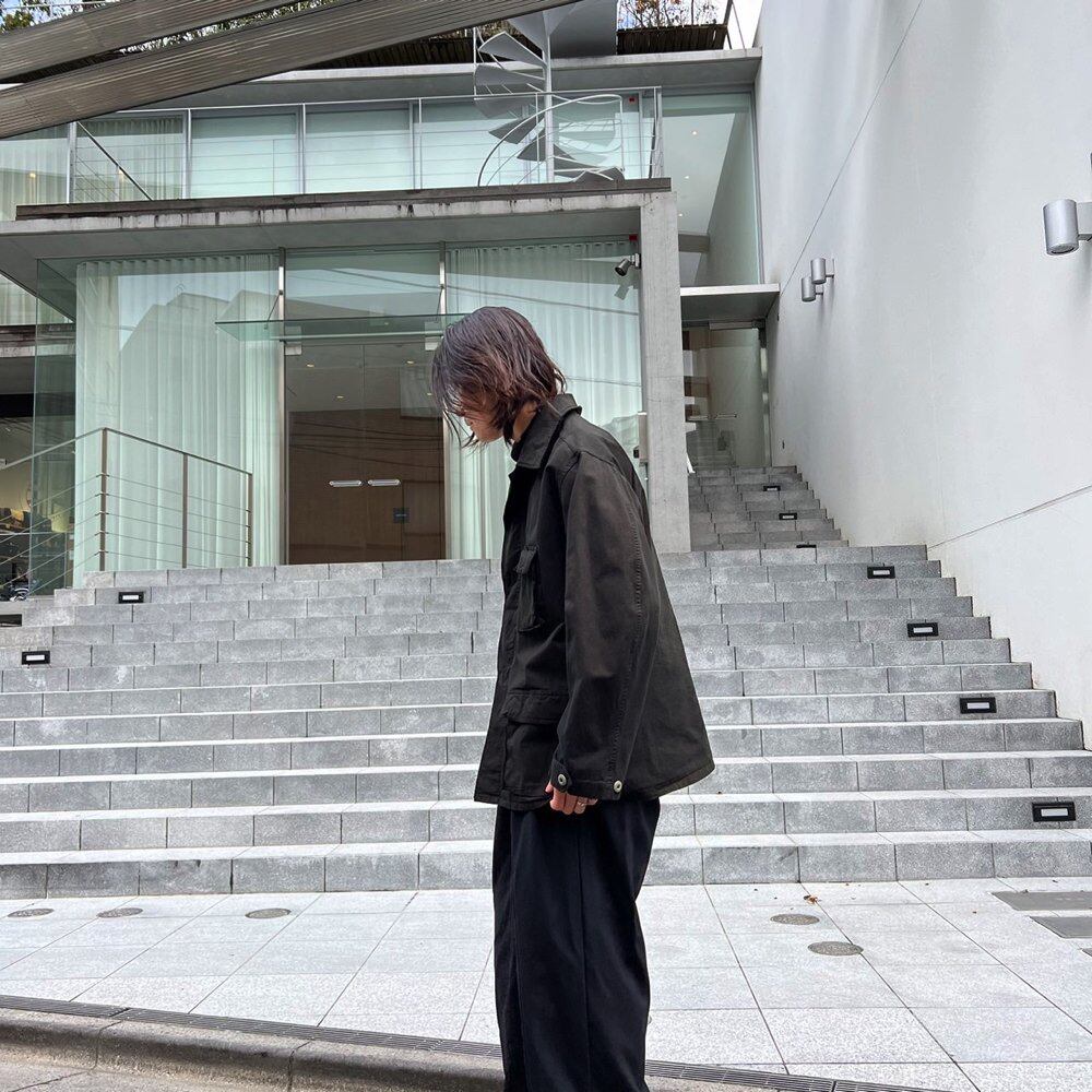 1990s American military fatigue jacket with post-dyed processing Black color with a faint trace of the original camouflage, easy to match in terms of color. Military jacket with a loose fit and well-balanced silhouette