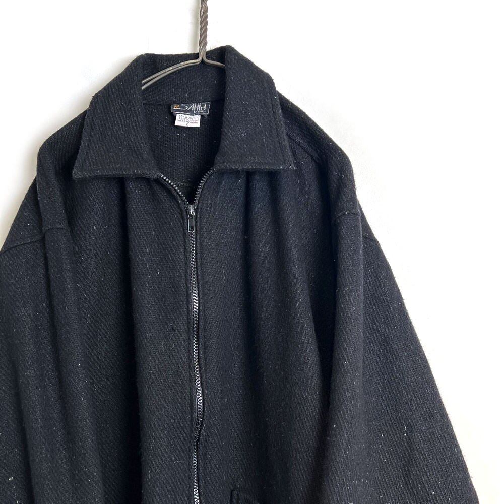 Zip-up jacket from the 80s. Black body with white nape. Made from soft wool/polyester fabric. good vintage jacket