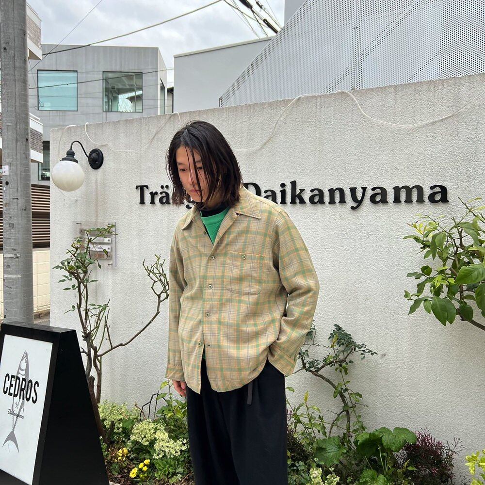 70s Pendleton wool shirt Pendletons luxury line Sir Pendleton vintage shirt Made of light and soft thin wool fabric with a smooth feel, perfect for the spring climate Beige and pale green The plaid pattern also has a vintage-like astringent color.