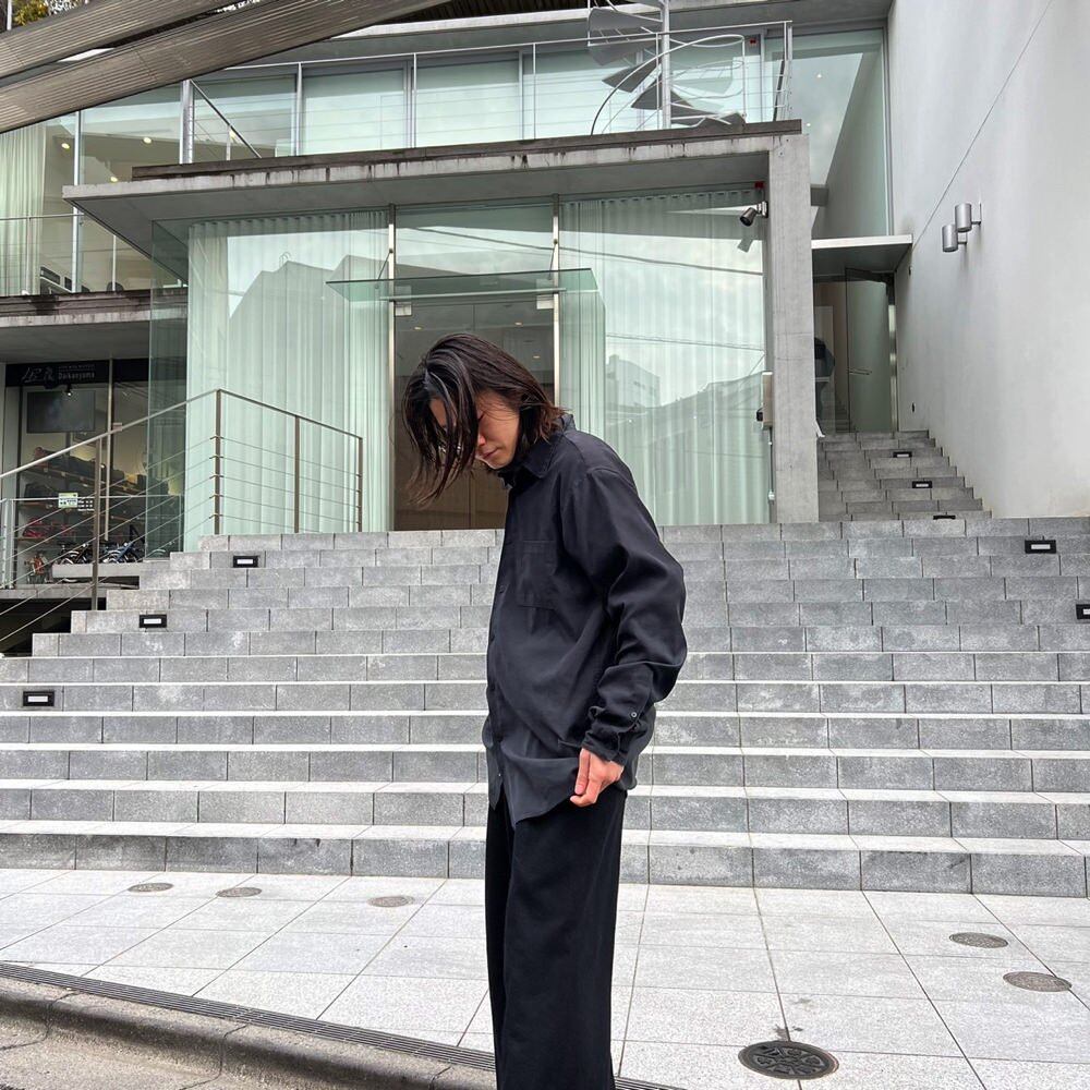 Peach skin shirt from the 90s Polyester fabric is brushed and made of peach skin cloth with a smooth suede-like texture. A vintage black shirt with a good silhouette and a sense of size