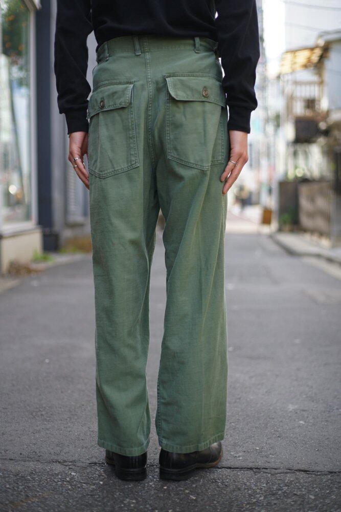 Urea buttons, double stitching on both outseam and inseam, loose tapered silhouette.