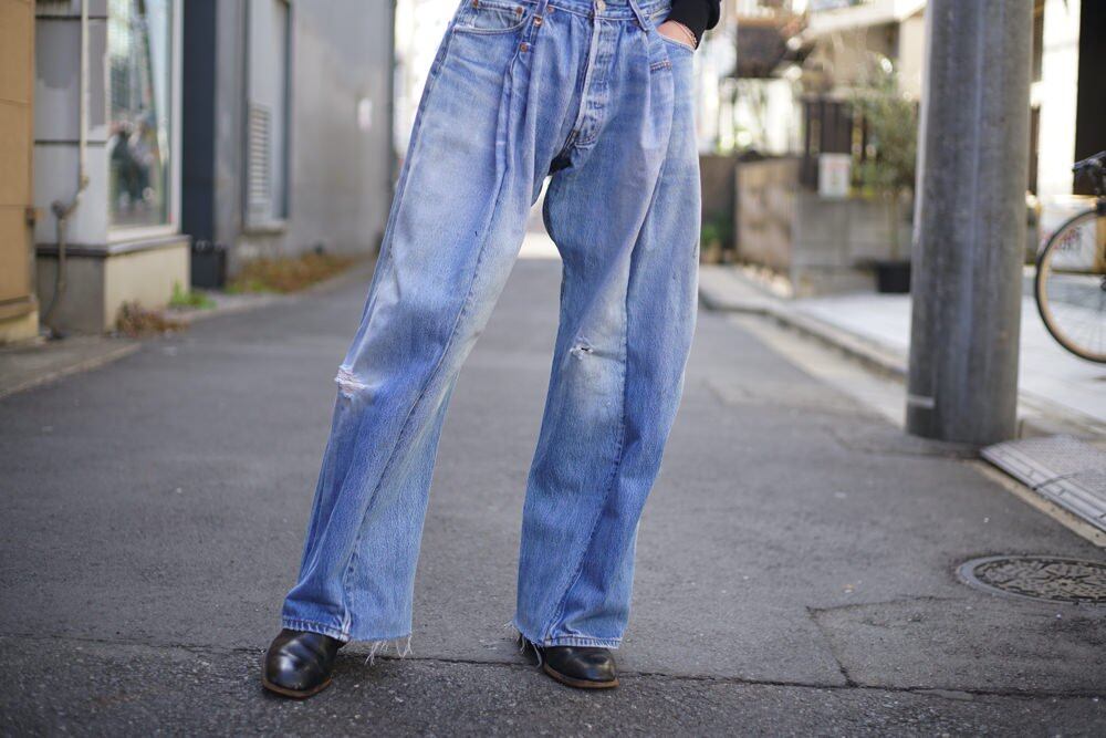 By using two pieces, it has a wide silhouette that is not found in second-hand clothes, and the waist is deeply tucked to create a more voluminous feel and an elegant drape.