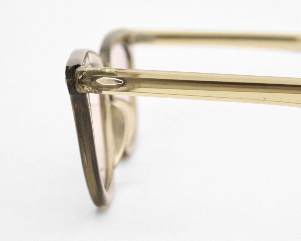 Vintage [Bausch & Lomb] glasses from the late 1960s. Known as one of Americas three major eyewear manufacturers, the brand has a history of over 150 years, but since B&L Ray-Ban was the last to make eyeglasses in modern times, its vintage frames are a rarity. Famous for cross hinges. Its a Bausch & Lomb safety, but this one has a modest diamond hinge and is slim and neat. The yellow olive clear frame is astringent and familiar to the face, giving it a light impression and a calm atmosphere. A new light purple UV lens has been added. It has been appraised and maintained by an optician, and the size of the temple (or rope) can be adjusted. (At a nearby eyeglass shop) Although the condition has been carefully examined, there are scratches and scuffs as this is a vintage product. Please purchase after understanding the characteristics of vintage and antique. All of our eyeglasses are maintained and lens exchanged at g room, an eyewear store in Ebisu, Tokyo.