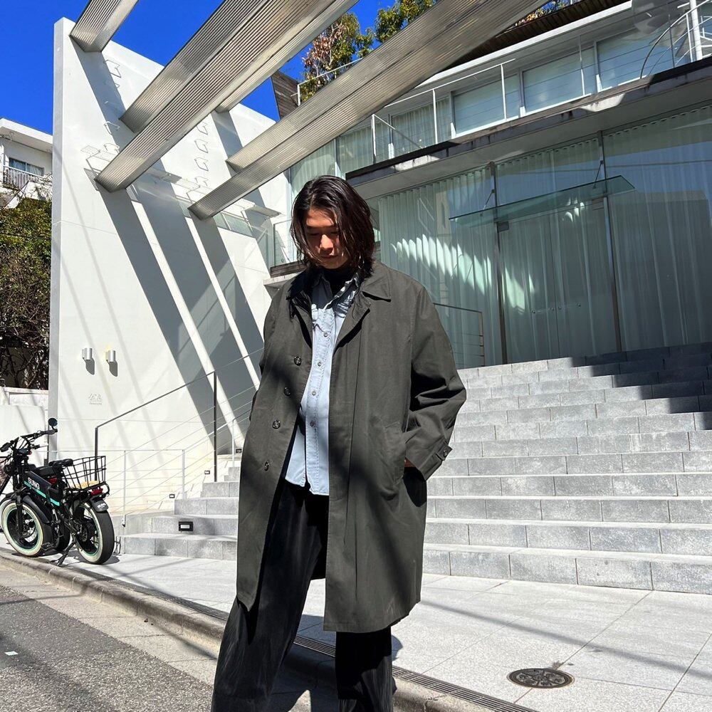 Bar collar coat from the 1960s Comes with a removable boa lining that can be used in 3 seasons from autumn/winter to spring. A bitter olive x black glen check pattern. Vintage coat that is easy to match