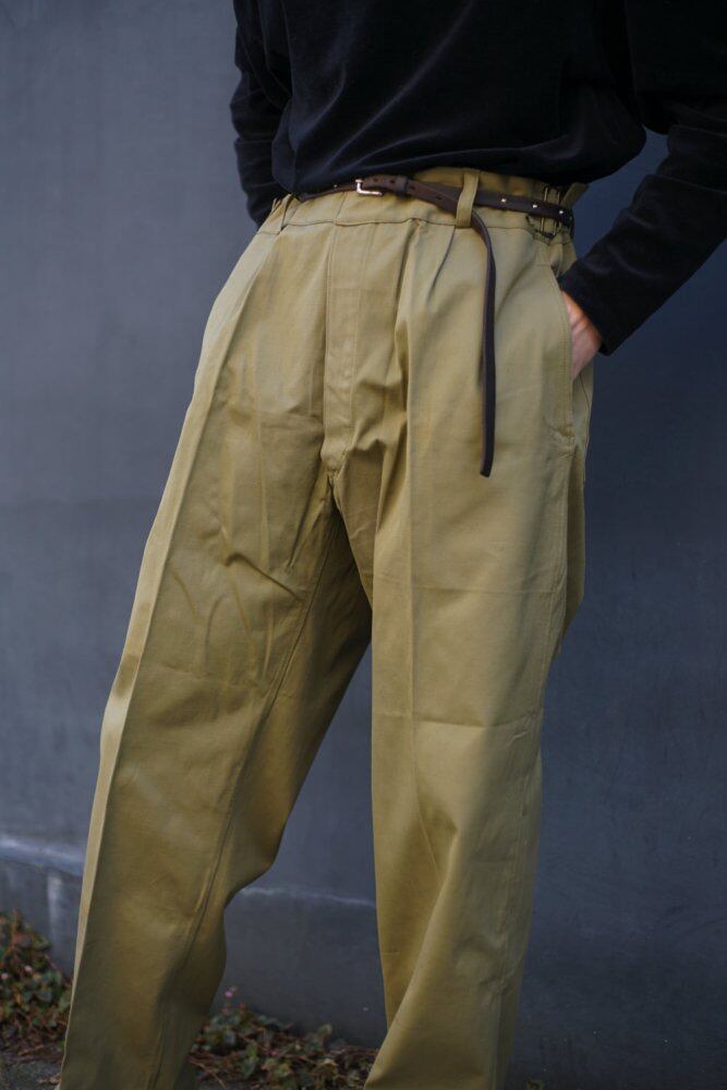 It has a bold silhouette with a moderately tapered line toward the hem, and the sides can be adjusted with an adjuster belt.