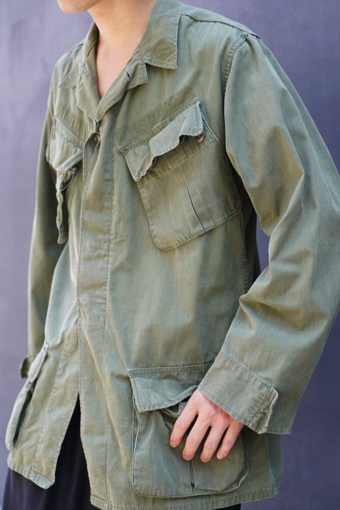 1960s vintage jungle fatigue jacket 5th type. A combat tropical coat, a field uniform for tropical areas that was adopted as the standard clothing of the US Army during the Vietnam War from the early 1960s.
