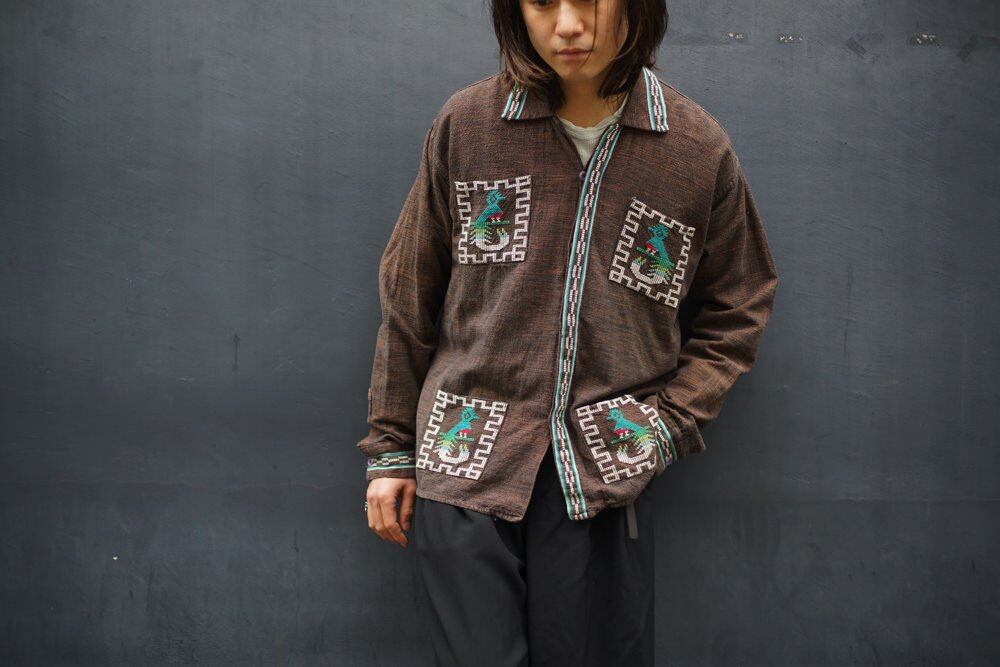 The quetzal, the national bird of Guatemala, is drawn in various places, and the delicate and colorful embroidery creates a unique presence.