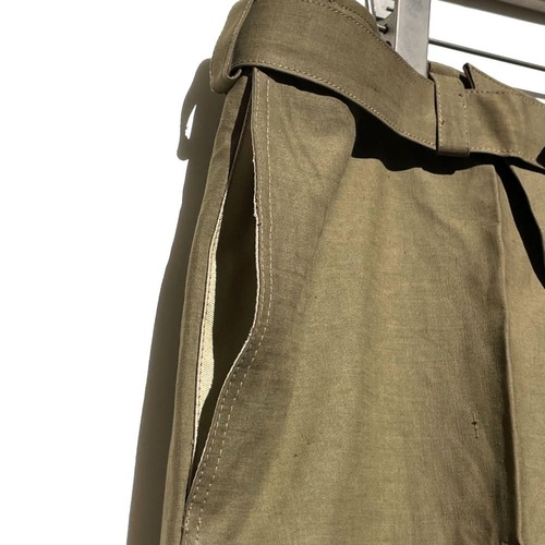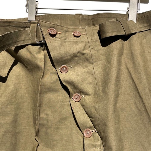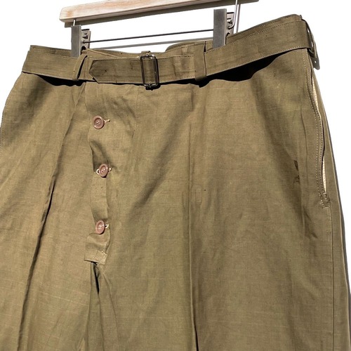 It features a diagonally placed button front design, a waist belt is attached, and the hem can be adjusted by squeezing the button.