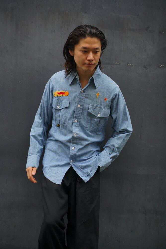 Around the 1980s, it is a chambray shirt made by WOOLRICH.