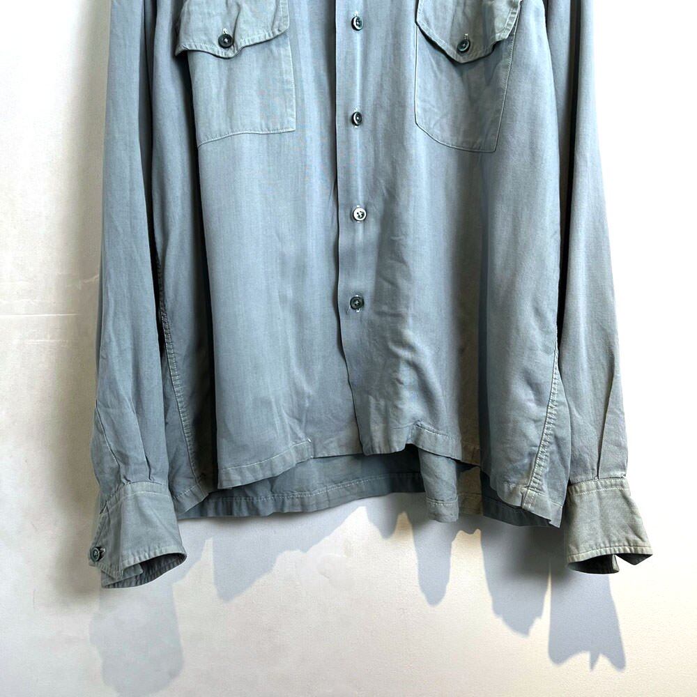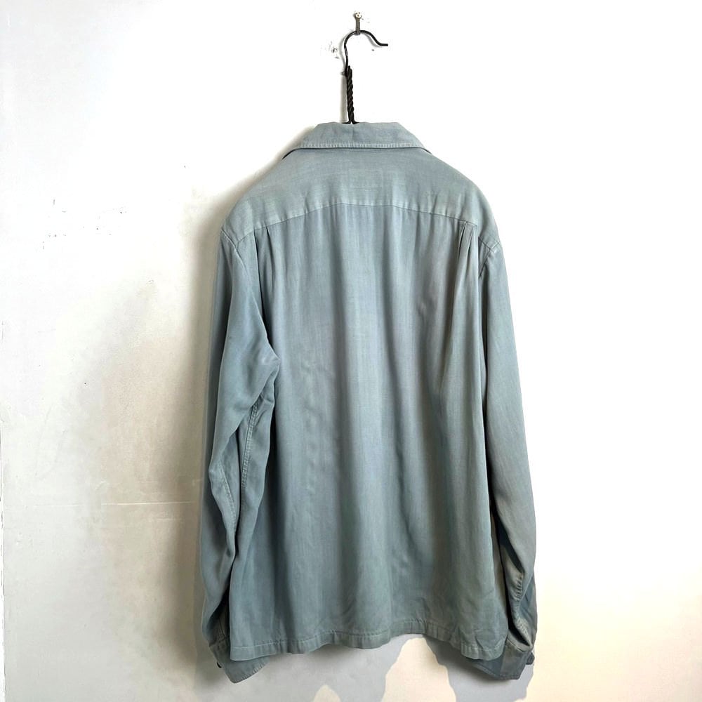 Vintage rayon shirt from the 40s and 50s. The grayish mint color is astringent and masculine.