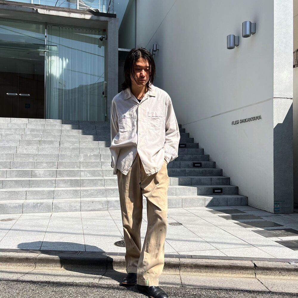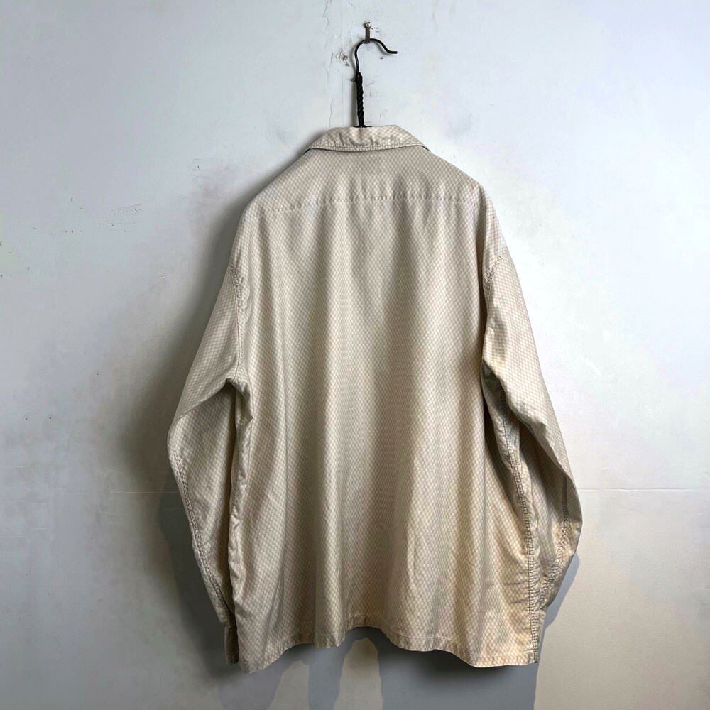 60s loop collar cotton shirt White x ivory with a soft impression and a net-like weave pattern. is a 17-half XL size, a rare size that is rarely seen in vintage shirts of this age.