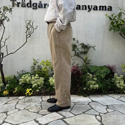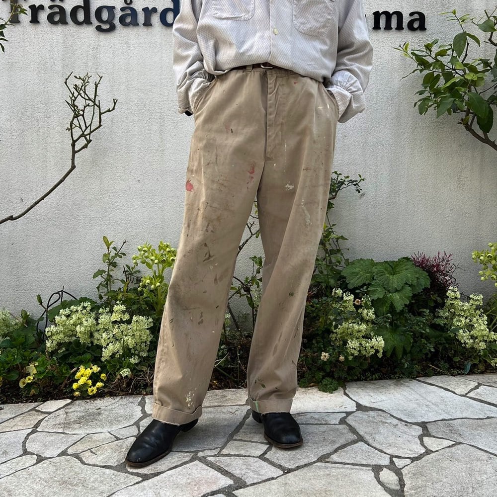 Chino trousers from the 1950s The realistic paint stains in a dusty beige color give it a very nice atmosphere. Vintage chino trousers with an easy silhouette