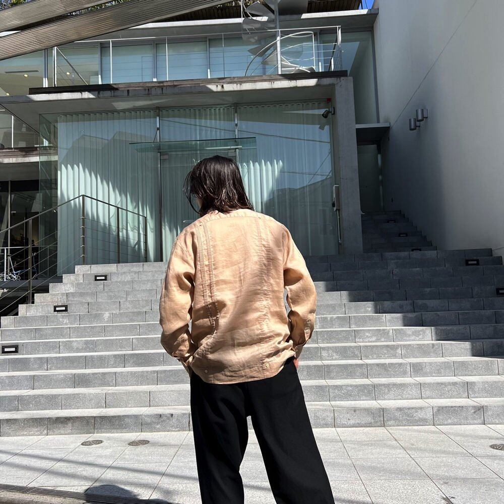 The 100% linen material has a soft and smooth texture, making it suitable for midsummer. The grayish beige color has a calm atmosphere and a mature color.