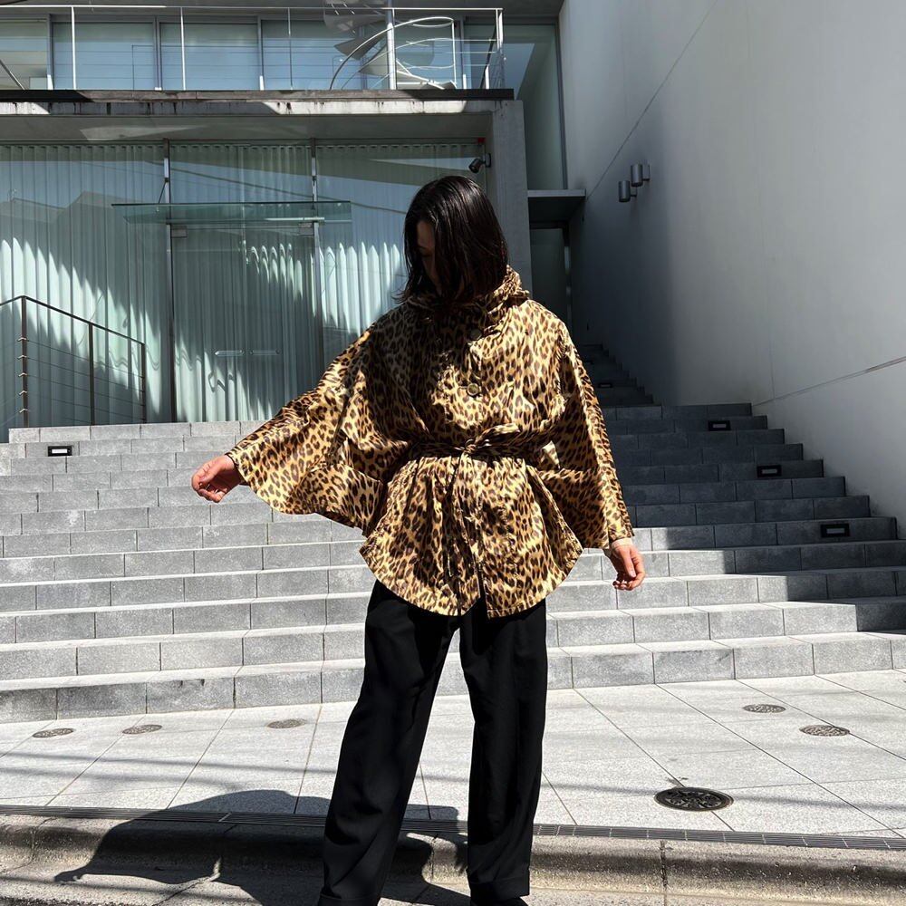 A vintage poncho from the 80s with a catchy leopard print thats eye-catching. A vintage item thats interesting for spring haori. A vintage poncho that can be hidden in a bag and used for sudden rain or cold weather.