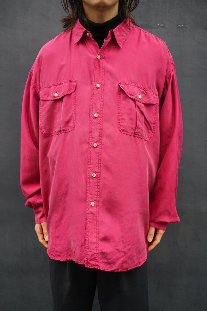 A big silhouette silk shirt from the 1990s with an elegant shiny luster of silk fabric.