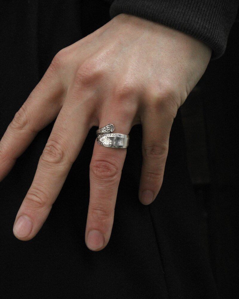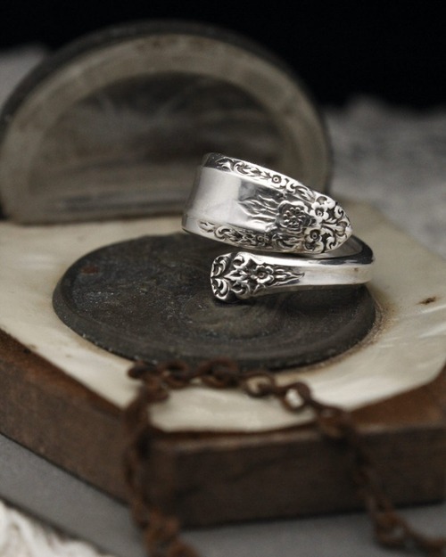 Spoon rings are said to have originated around the 17th century when aristocratic servants stole their masters cutlery because they could not buy wedding rings. Hippies discovered and revived it since the 60s. Most of them are made by long-established American silver tableware makers that started in the 19th century. The narrow body, which is surprisingly small, has an elegant expression combined with casual and fine workmanship, and the solid sterling body has a solid construction and a vintage appearance. As this is a vintage product, there may be scratches and scuffs. Please check the photos and understand the vintage and antique characteristics before purchasing.