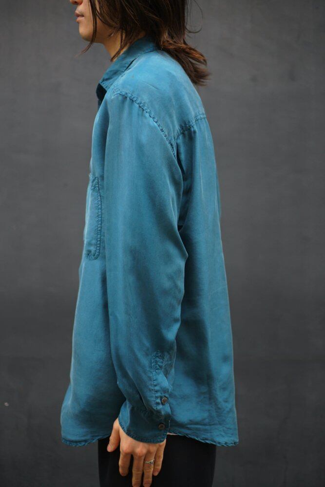 A big silhouette silk shirt from the 1990s with an elegant shiny luster of silk fabric.