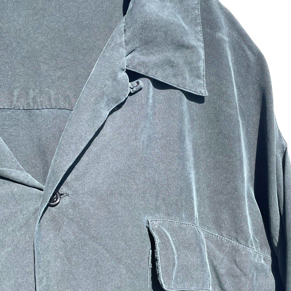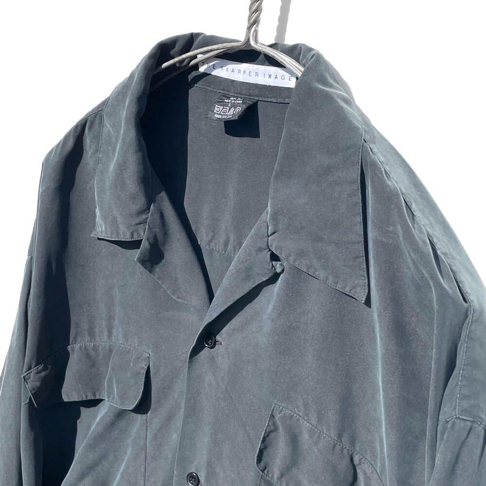 Around the 1990s, THE SHARPER IMAGE 100% silk fabric is a comfortable open-collar silk shirt with a slimy texture.