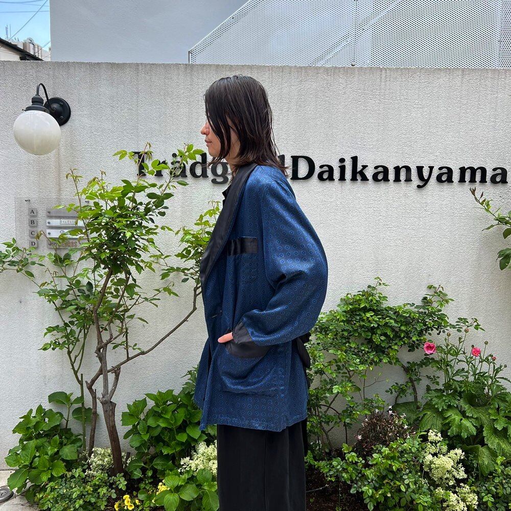 1960s smoking jacket The surface is made of rayon satin with a glossy sheen, and the back is made of brushed cotton with a soft touch.