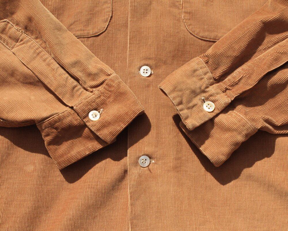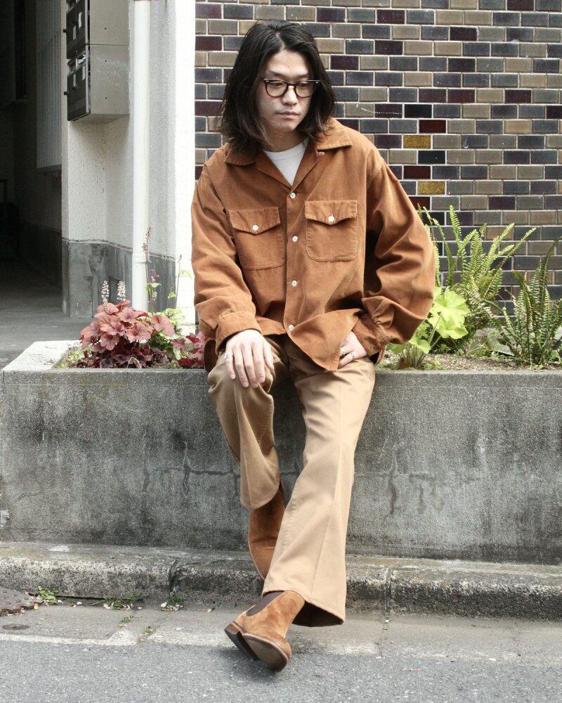 Open collar shirt from the 1950s. Fine ribbed cotton corduroy fabric is used, and the smooth and soft texture gives it an elegant look. Vintage-like light brown - terracotta color for an expert atmosphere. Probably over 18 sizes, it is a rare large size for this age, and it is a silhouette that can be worn loosely and can be worn as a haori. Subjectively, it is in good condition as a second-hand item. Since it is an old item, it rarely deteriorates over time. Please check the photos and understand the characteristics of vintage before purchasing.