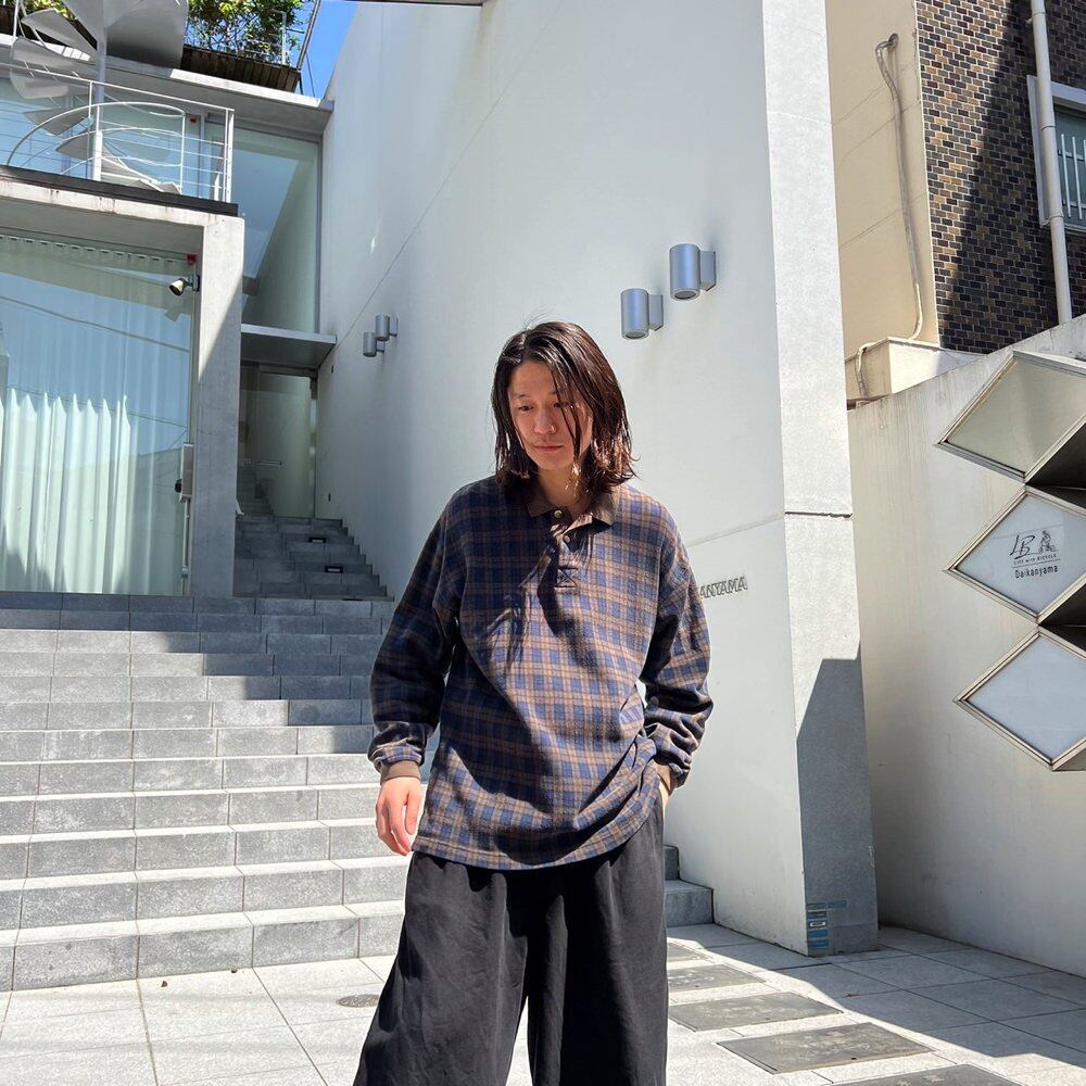 Long-sleeved polo shirt from the 90s Brown x navy masculine plaid pattern with just the right amount of looseness. 100% cotton material that can be worn regardless of the season.
