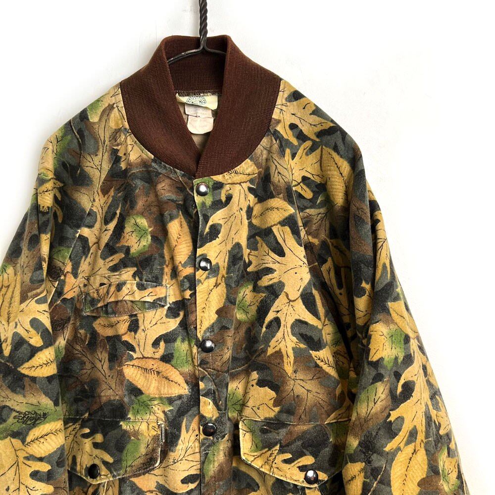Camouflage jacket from the 80s Bomber jacket type design that is easy to match with the khaki and brown leaf camouflage pattern. well-balanced silhouette