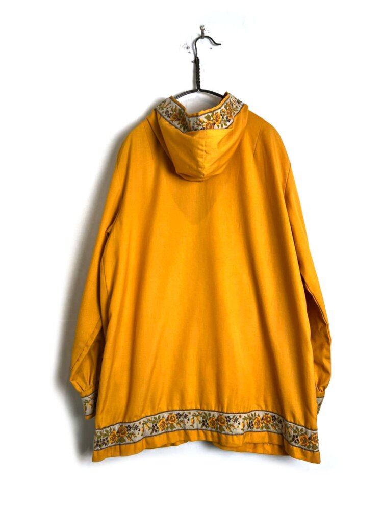 Vintage hoodie of the 70s Nostalgic vintage item with a nostalgic feeling of nostalgia, with a design full of 70s-like piping in mustard color with a floral pattern. Light fabric like a shirt made of cotton x polyester material. Good size and good silhouette.