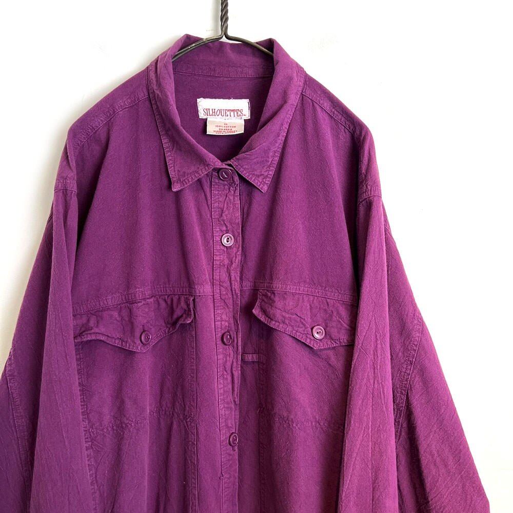 90s 3XL size big silhouette shirt One piece with a loose and long silhouette that can be used like a coat There is a hand pocket under the chest pocket, so it is easy to use as a shirt outerwear The vivid purple color is also eye-catching. good tint