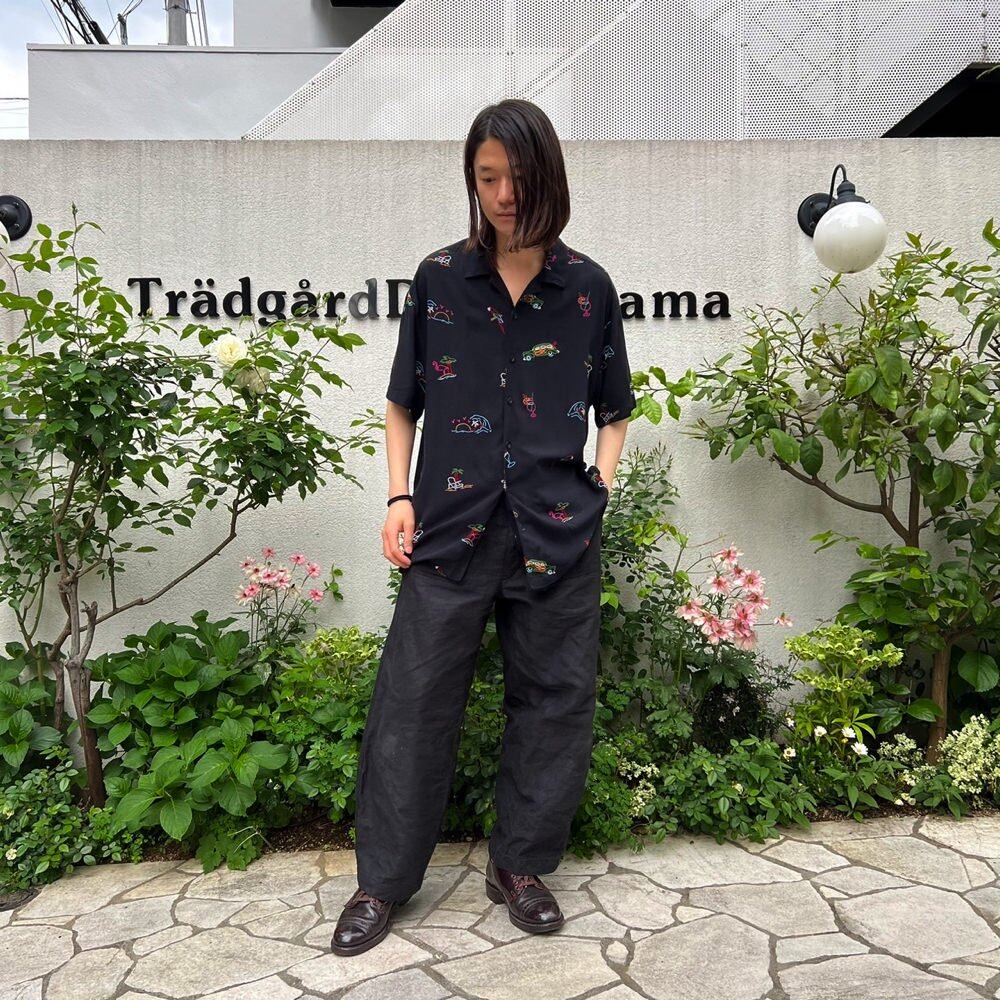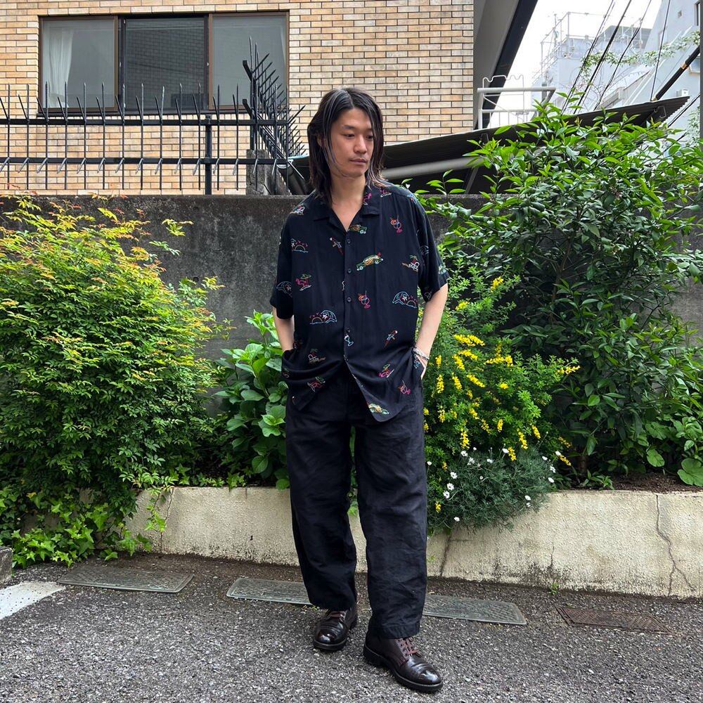 Short sleeve rayon shirt from the 90s A cute piece with a pop neon art pattern printed on the black body