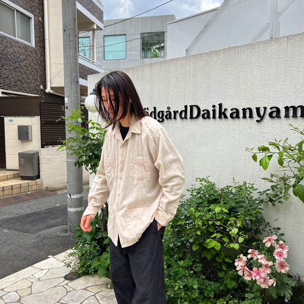 Long sleeve Cuban shirt from the 80s Made of linen and cotton material with a smooth and comfortable texture that is perfect for the humid Japanese summer Natural beige color that is easy to match Long sleeve design that can be used all year round Moderately loose size It is the first place with a good silhouette.