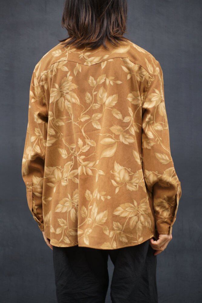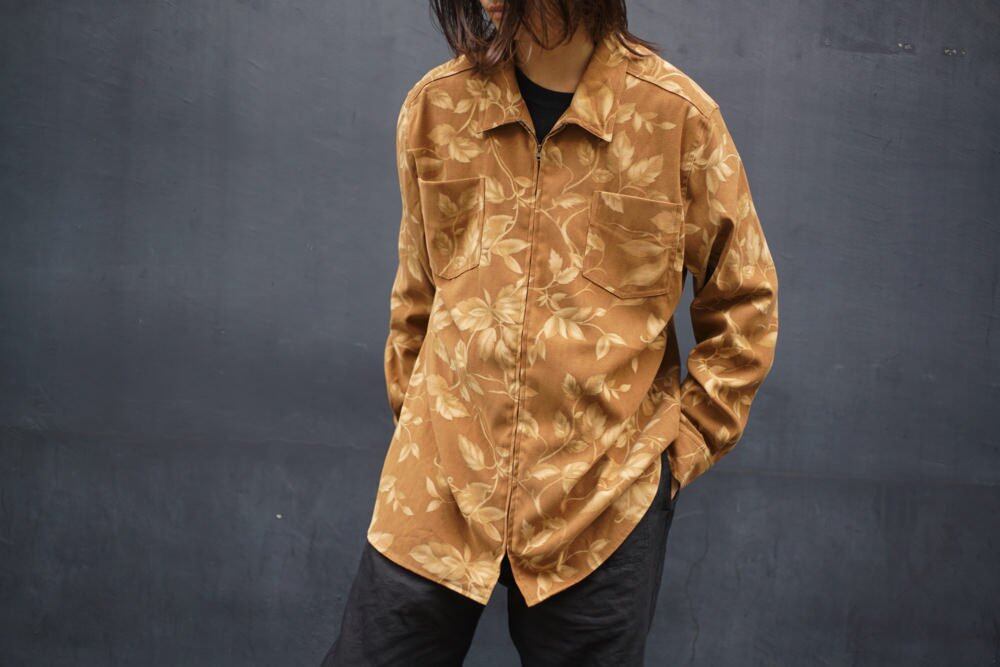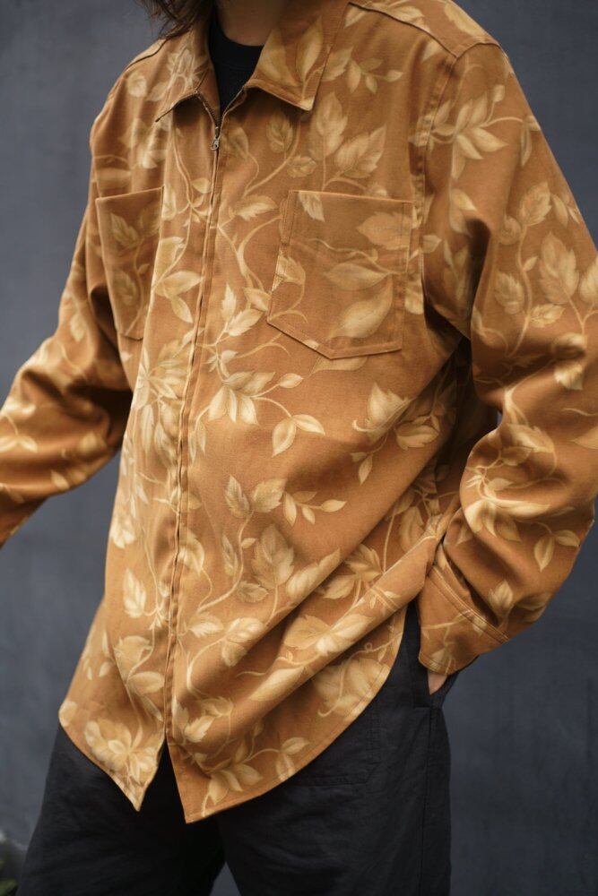 Leafed pattern peach skin zip-up shirt from SAG HARBOR, circa 1990s.