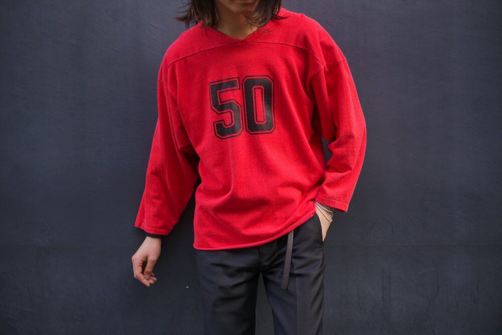 The rare half-sleeve type, the retro look of vintage sportswear, and the texture of aging have a presence that cannot be felt in modern items.